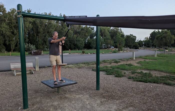 Shortly after pulling in to this campsite, we became quickly reacquainted with Midwest humidity and insect life. For the last several months, we had been blissfully free (mostly) of these nuisances. We thought that Montana was a little early to be having to deal with this, but then we realized we were only a few miles from the North Dakota border.
