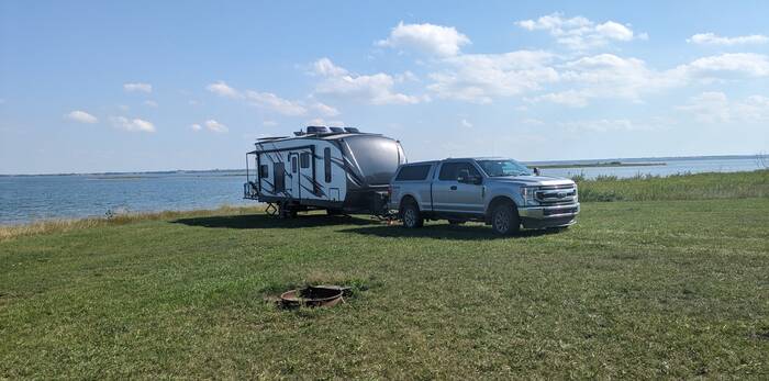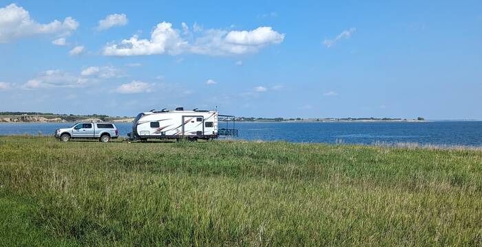 Our next destination was a free recreation area on Lake Sakakawea, formed by the damming of the Missouri River. What a beautiful setting this was right on the lake! And if that wasn't awesome enough, we had the entire recreation area to ourselves, with only the waterfowl and occasional boater as company. Oh, and the flies and yellow jackets--they provided us with a considerable amount of company as well.