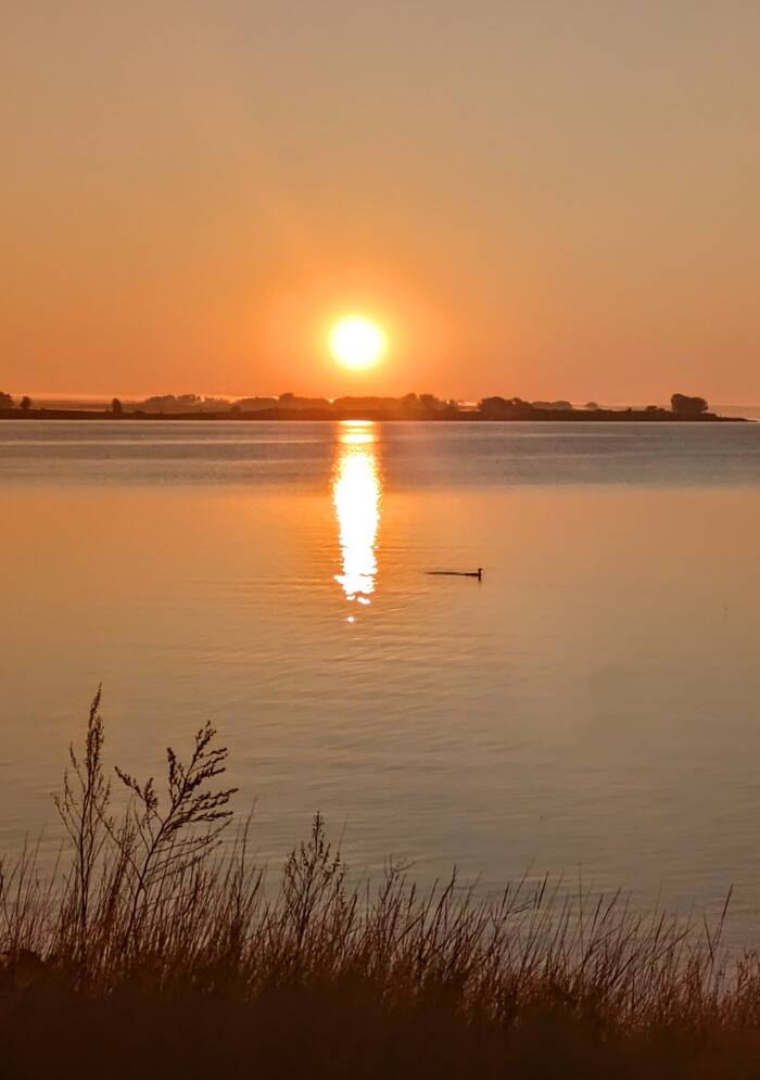 The next morning, Julie was awakened just in time for sunrise by what she thought was the sound of a loon. Whether or not there was an actual loon, the sunrise was stunning! Aside from bird noises, everything was quiet and still.
