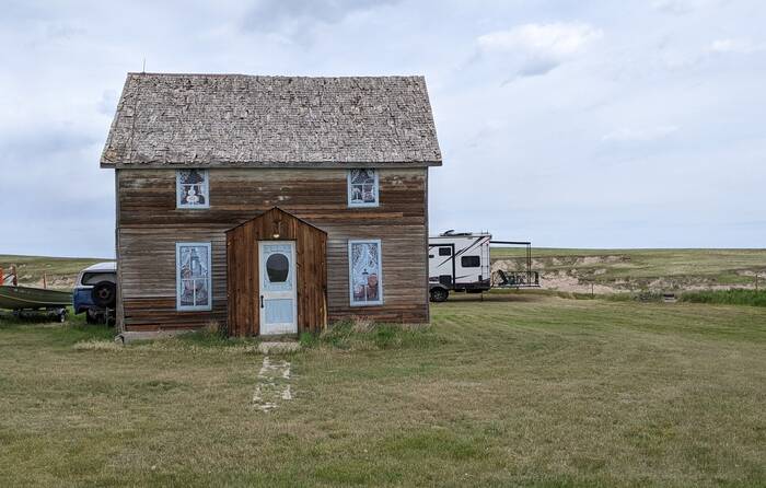 High Plains Homestead is located in the Nebraska panhandle and borders the Oglala National Grassland. The proprietors were a nice couple who purchased the property in 2018. The previous owner had a hobby of collecting ghost town buildings and furnishings, which he brought to the property. It appeared that at one time, the property was more of a "resort" with a "ghost town", restaurant, pool, horses, gift shop, and cabins. The "town", gift shop, and cabins are still in operation, but not the other amenities. Times are a bit hard for the couple, as we only saw one or two other parties here during the Memorial Day weekend.