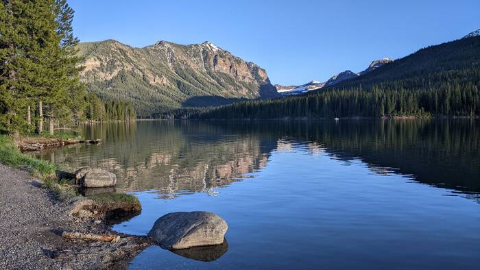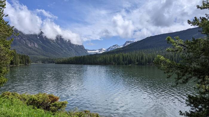 A view of Hyalite Reservoir from the campground on the way to the trailhead