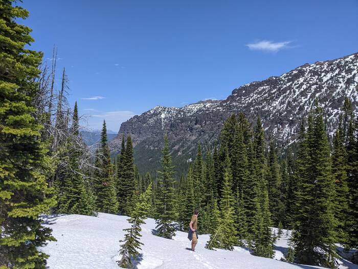 Thursday was the Hood Creek Trail which had spectacular views of the surrounding mountains as well as a scenic meadow. The trail was made more exciting by the amount of snow covering portions of the trail. Unfortunately, Audrey was feeling under the weather and didn't join us on this hike. Instead, she had a relaxing time hanging out by the lake (Hyalite Reservoir).