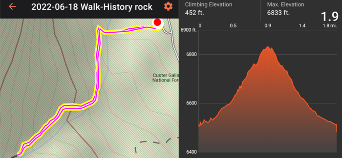 We hiked from our campsite. Ignore the straight line on the left (and add an extra 1/2 mile for it) - Rick messed up the GPS and it wasn't recording . .