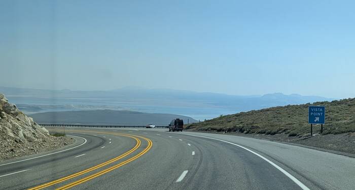 It rained most of the day on Friday after we got back from Yosemite. We were grateful for this for two reasons: 1) we were glad that it hadn't rain the previous day when we were in Yosemite; and 2) we were tired and welcomed an excuse to stay inside all day. Saturday's main event was laundry in the attractive town of Mammoth Lakes, another destination that we had planned to go to in 2023, but ended up scrambling for new accommodations due to the snow. We also went to Mass, drove around a little, picked up a few items at the grocery store, and got gas because it was such at deal at only $5.43 per gallon.