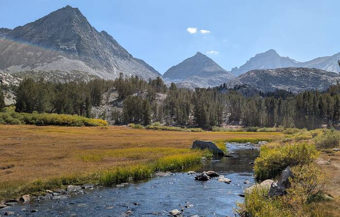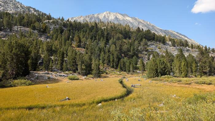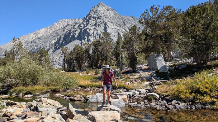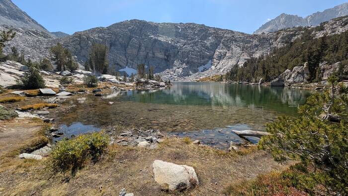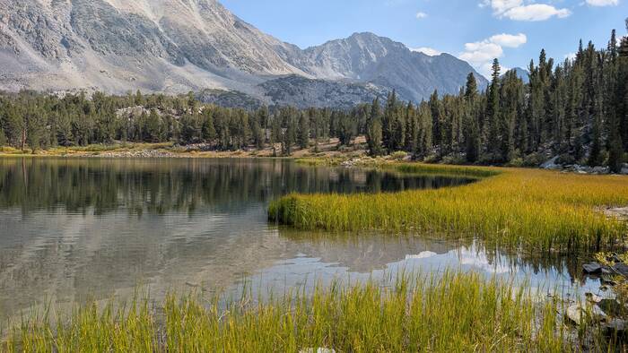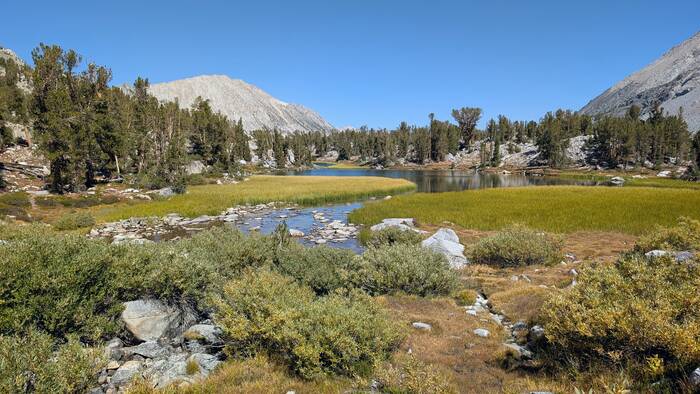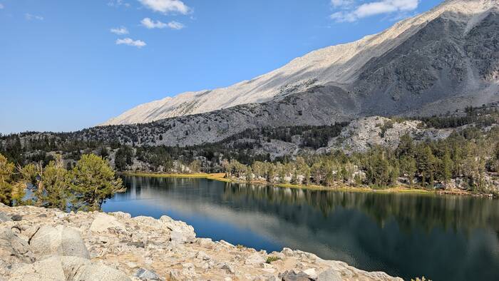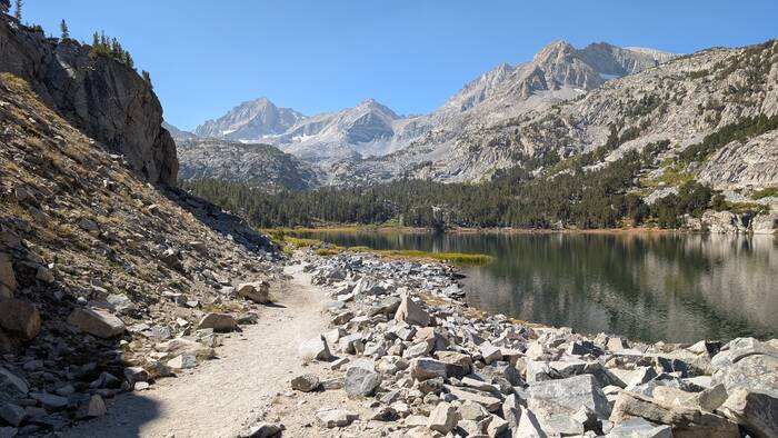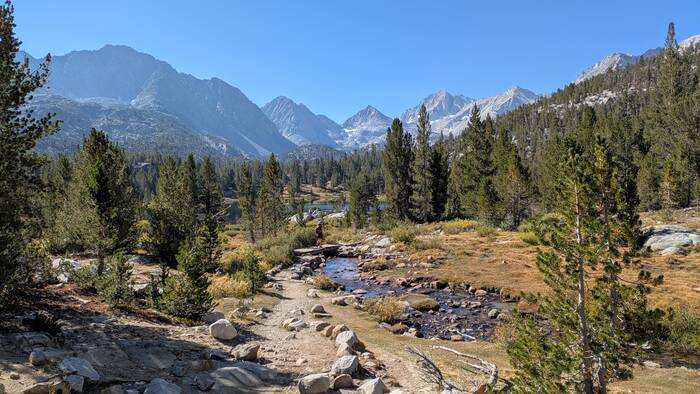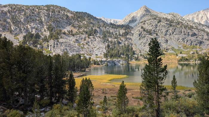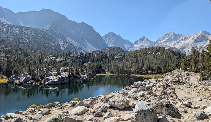 The day after arrival was forecast to be gorgeous, sunny, high in the 70s, and with minimal haze, so we found us a good hike in the John Muir Wilderness called Little Lakes Valley Trail. You can't go wrong with a hike with that name!