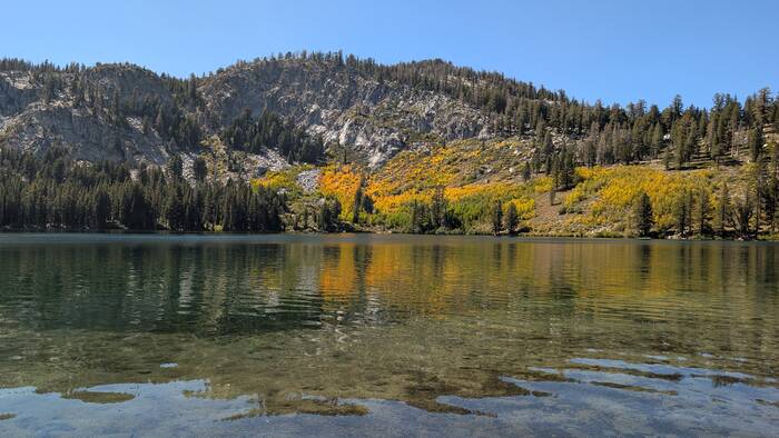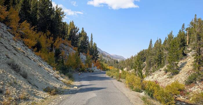 In high summer, the Little Lakes Valley Trail is quite popular, and people online said to get there by 7:30 am to get a parking spot. We didn't want to get up that early, so we got to the trailhead around 9:30, and there were still ample parking left this time of year.