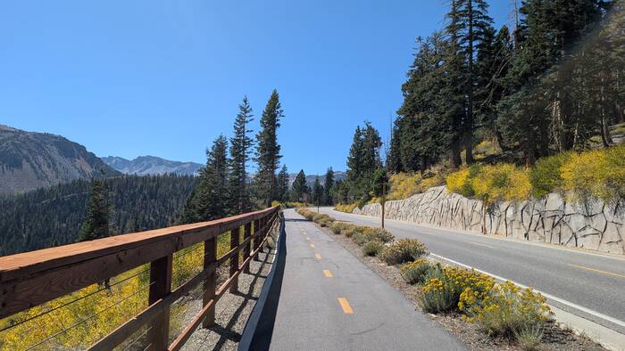 Our last day was such a pretty day, that we decided to go back to Mammoth Lakes and ride their bike trail that weaved through the lakes.
