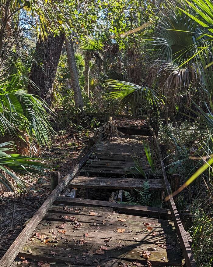 Most of our 4-day stay at Juniper Springs was quite cool (upper 50s/low 60s in the day, 40s at night), but it was pleasant enough when the sun came out. The springs were beautiful, although we went a little rogue and walked on closed boardwalk and bridge ruins so that we could see some of the springs. We have found that many wooden boardwalk and bridge structures in the South seem to close for years at a time, waiting for the elusive Blue Moon Maintenance Crew to arrive.