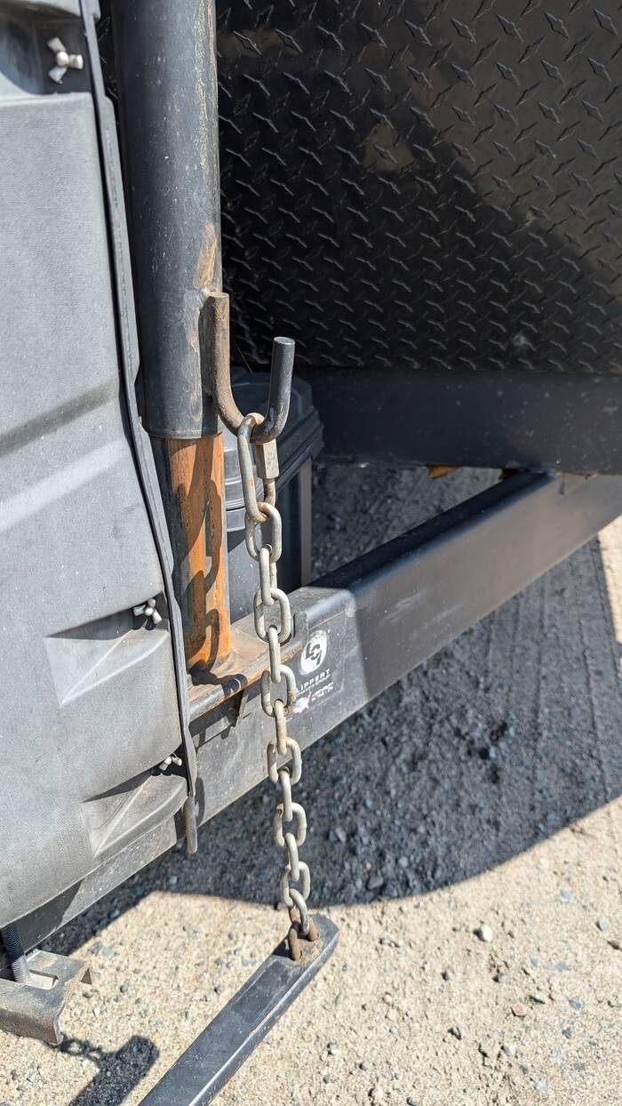 Weight distribution bar and chain dragging on the ground--not good.