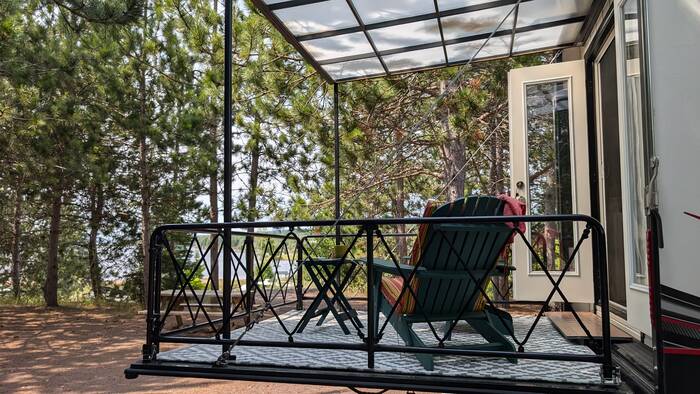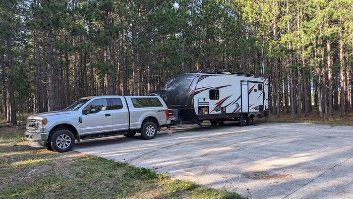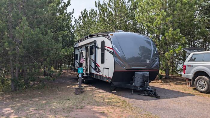 Our stop for the night was a free camping area adjacent to an airfield not too far from Sault Ste. Marie. It was surprisingly nice, and had a large, level concrete pad to park on.