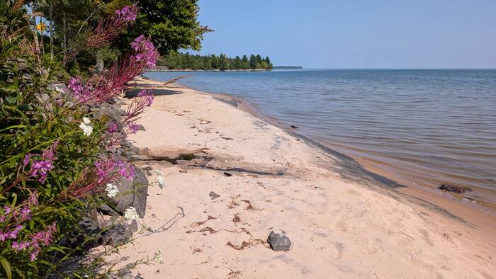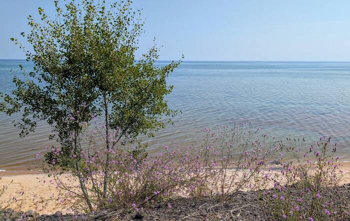 L'Anse Bay and quite a bit of haze