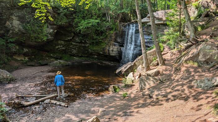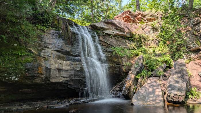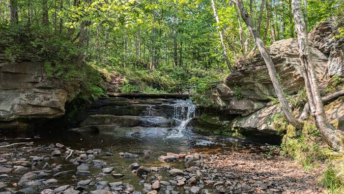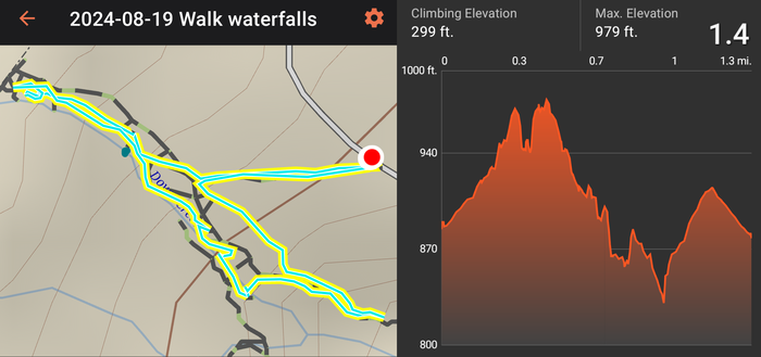Monday was finally sunny again, although quite cool (mid 60s). We decided to walk a nearby trail to Hungary Falls. It was a short but pleasant trail with several waterfalls.