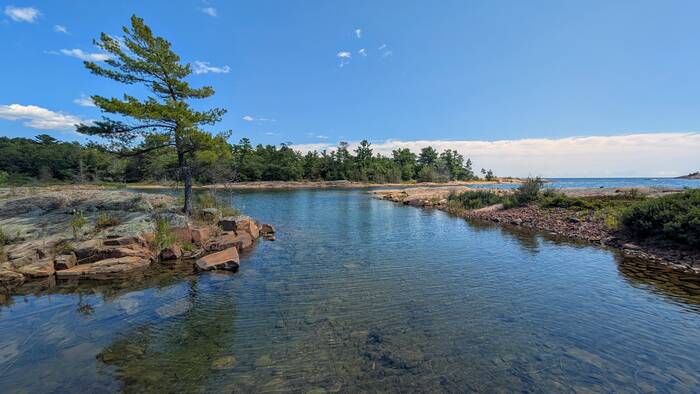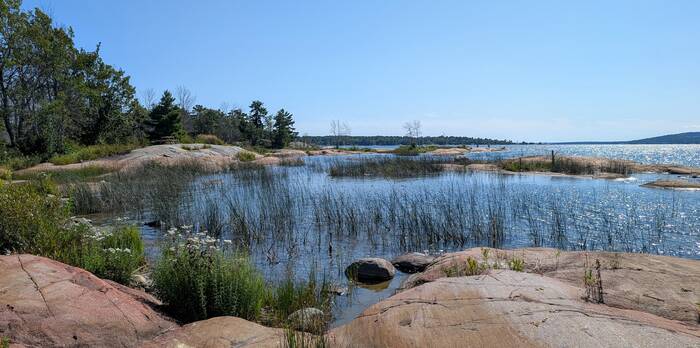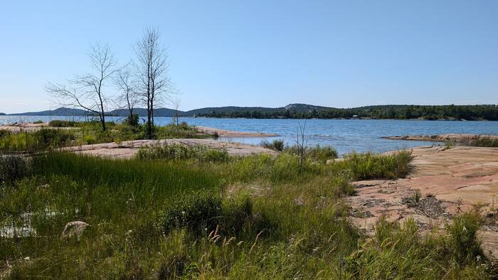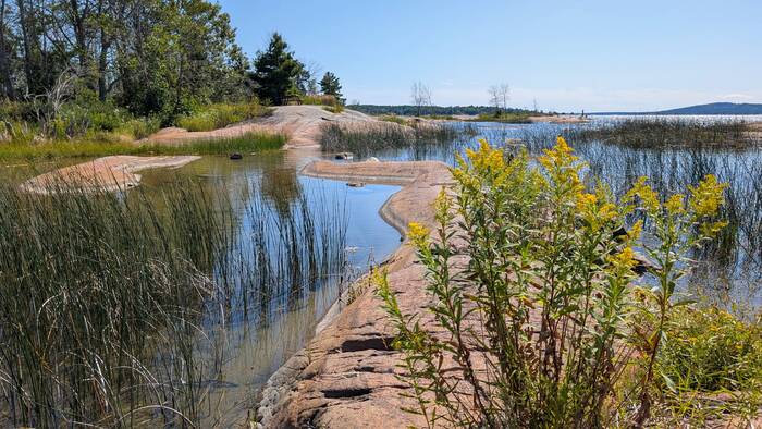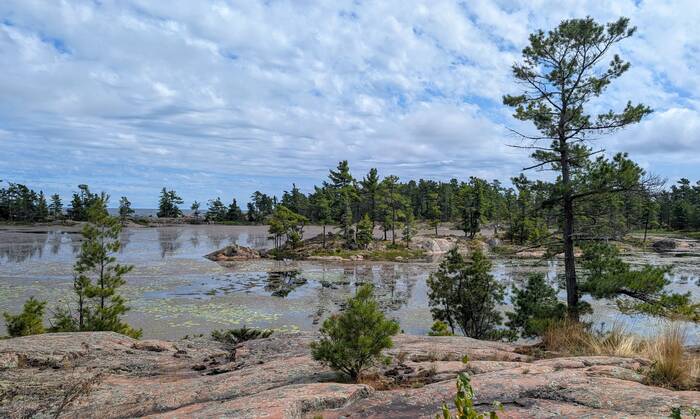 Pond on the left, Georgian Bay on the right