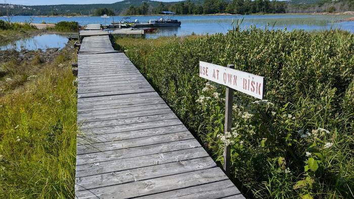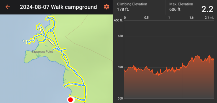 The next day brought more beautiful weather, and we lost track of time just sitting on the deck enjoying the view until mid-afternoon. We finally motivated ourselves to take a walk around the campground to explore the tent section. It turned out to be a fun and more adventurous outing than we expected. We discovered a boat dock and a scenic water access that wasn't shown on the campground map (located near the "soft do not drive here" section on the map--a place that looks like people drive there anyway to put their boats in 😲). We also found remnants of trails and got the impression that perhaps this property had been more developed at some point in the past.