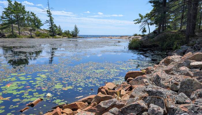 This pond would empty into Georgian Bay (in the background), if it weren't for a strategically placed beaver dam