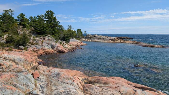 Wind notwithstanding, we really enjoyed our stay in Killarney. Julie had originally booked this location because of its close proximity to Killarney Provincial Park, as the campsites at the provincial park were notoriously difficult to book and there were only a small number of sites that would have been appropriate for our size trailer anyway. We had every intention to go to the provincial park, but you now have to obtain a permit online ($18/car) which only gives you access to one particular part of the park. It seemed too complicated to figure out where we wanted to go and when. So, when we found such great scenery here in Killarney for free, we just never made the effort to go to the provincial park.
