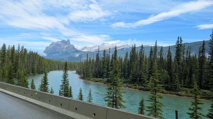 The drive was mostly rainy with some breaks in the clouds here and there. Banff National Park has several of these wildlife bridges over the Trans-Canada highway.