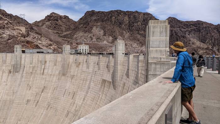 Hoover dam straddles the Nevada-Arizona state line. (Nevada to the left; Arizona to the right)