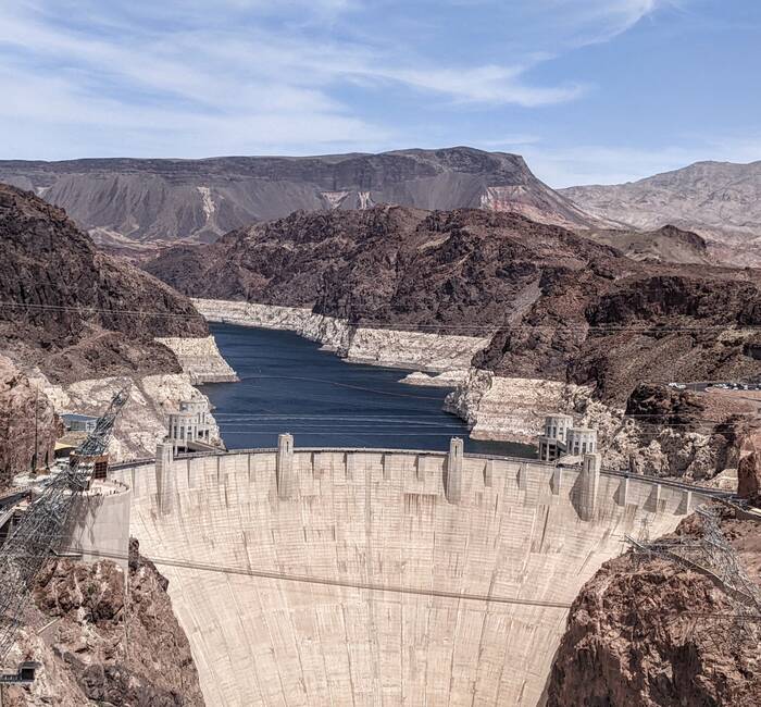 This picture was taken from the Mike O'Callaghan–Pat Tillman Memorial Bridge. The "bathtub ring" is very prominent here.