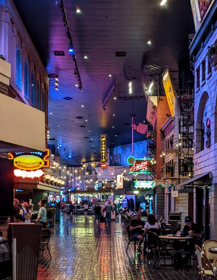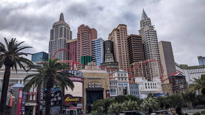 The inside of New York New York was decorated to look like the streets of New York