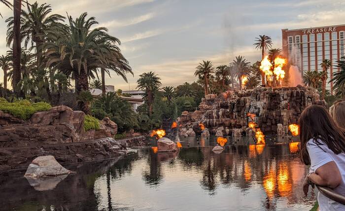 The nightly volcano show outside of the Mirage. Word has it, Hard Rock bought the property and the volcano will be demolished to make way for a giant guitar.