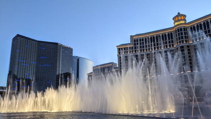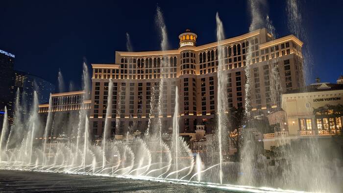 The dancing fountains at the Bellagio. Our favorite free attraction in Vegas.