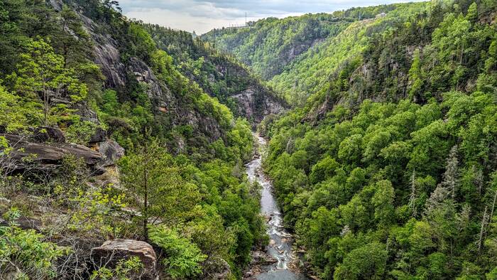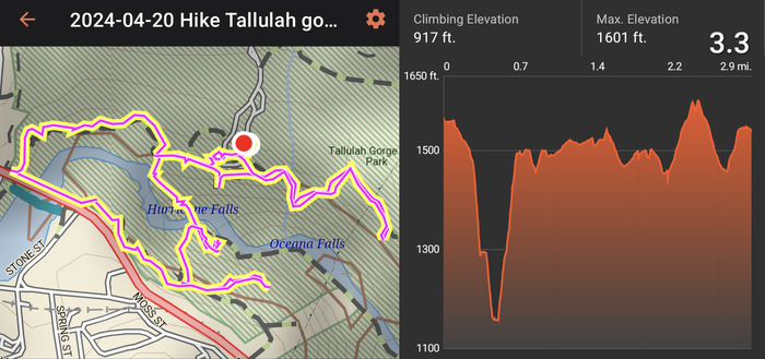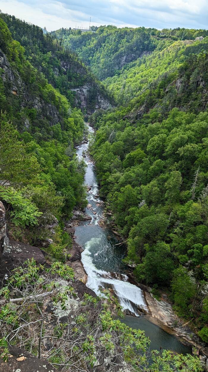 On Saturday, we went to Tallulah Gorge State Park (because we had not yet seen enough waterfalls). Bonus--extra water was released this weekend from the upstream dam for "aesthetic purposes". The trail we took was only 3.3 miles, but the 500 vertical feet of stairs to the bottom gave us a good workout.
