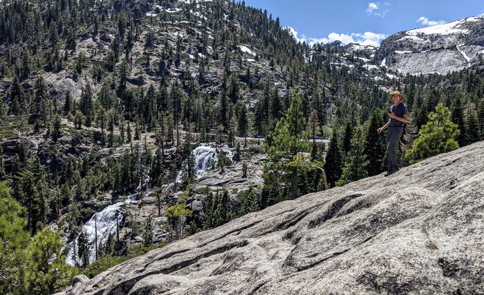 Look around the same spot with views of falls and Emerald bay