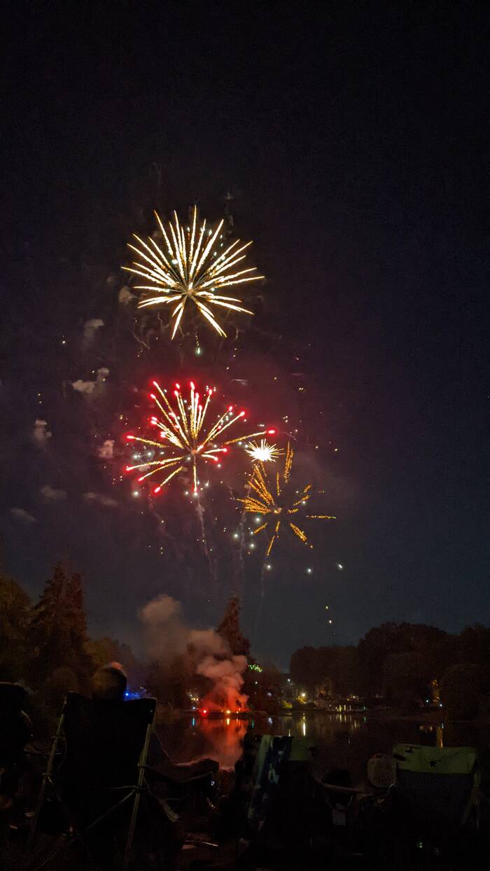 At long last, 10pm arrived, and the fireworks began. Since Longview was celebrating its 100-year anniversary, they added a bonus feature of special flares on the water at the beginning of the show.