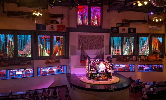 Dinner that night was at the unique Organ Stop Pizza, home of the world's largest Wurlitzer pipe organ. You order your pizza, and then take a seat in view of the organist playing all kinds of music from pop to Disney to Chattanooga Choo Choo (where the organ sounded remarkably similar to an actual steam engine train). The kids had requested something different to do--and this fit the bill!
