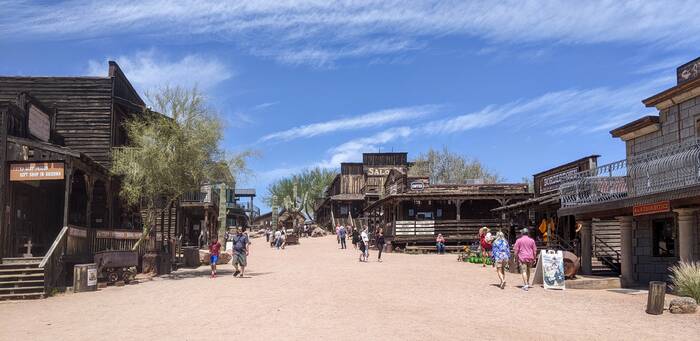 In Tortilla Flat, we enjoyed some prickly pear gelato and observed a pretty hokey "gun fight". Color us unimpressed. (The gelato was good, though.)