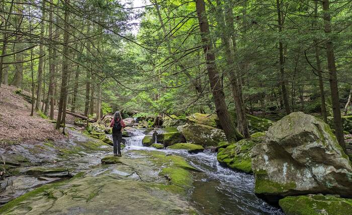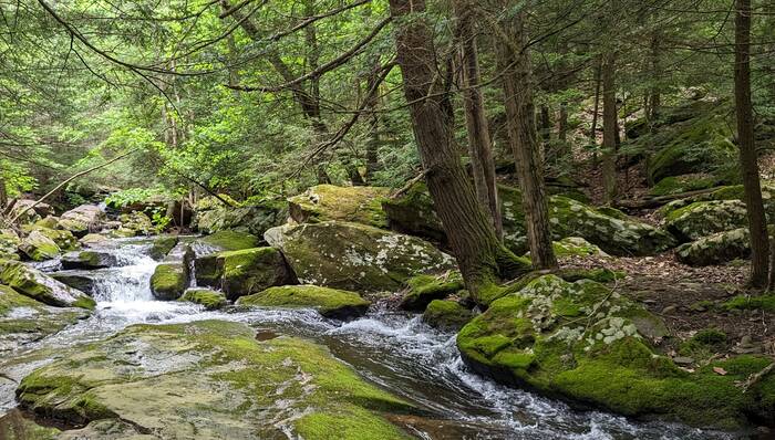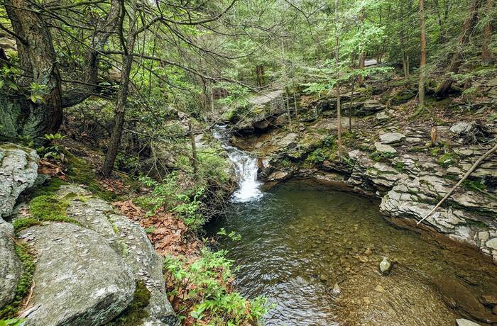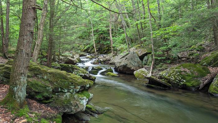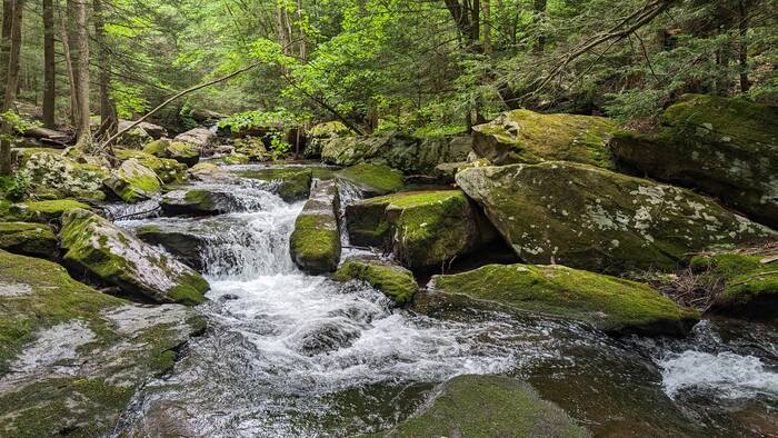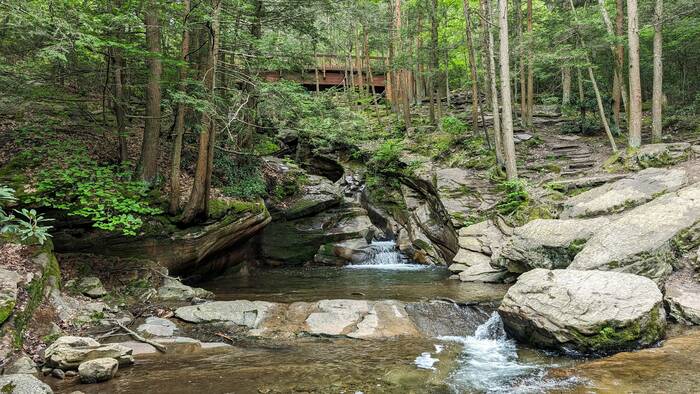 During a break in the rain on Friday, we took a trip into the nearby town of Wilkes-Barre to have the truck tires rotated. Julie discovered an interesting-looking nature area nearby (Seven Tubs Recreation Area), so we had ourselves a nicer-than-expected hike.