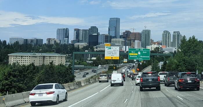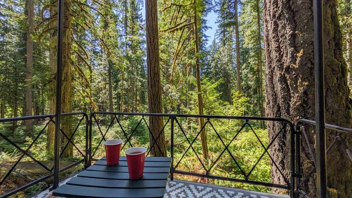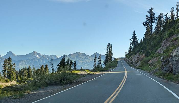 Northward we drove, almost to Canada, before turning east to enter Baker-Snoqualmie National Forest in the North Cascade Mountain Range of Washington. We took our time driving and made a long stop at a Walmart to do some grocery shopping and sit in the parking lot to soak in some solar to recharge our batteries. They almost made it to 100%, but not quite. We also picked up a new phone for Julie at an Amazon box along the route (yay!). Once we got past the Seattle Metro area, the scenery was quite bucolic.
