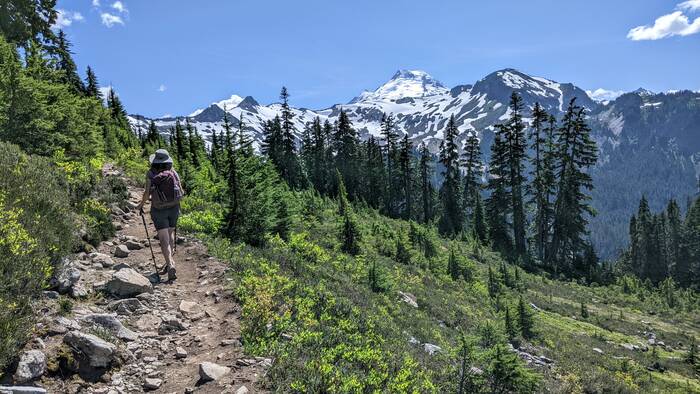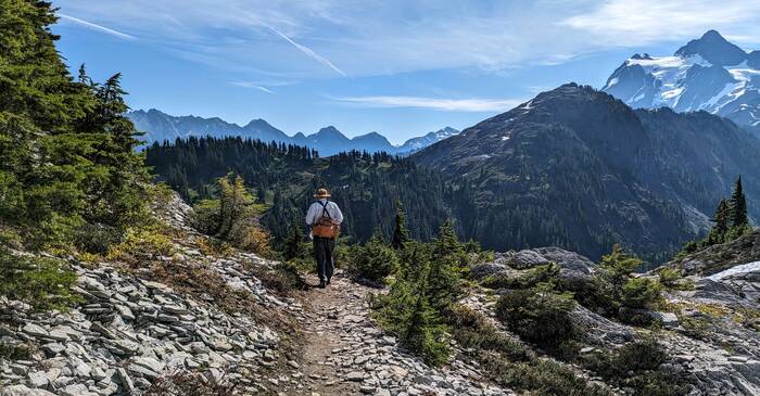 On Friday, we drove about 40 minutes away to hike the spectacular Chain Lake Loop Trail (7.5 miles). It was pretty much non-stop scenery the whole time. Rick has declared it his new favorite hike since retirement. Julie agrees. Fair warning--lots of pictures to wade through here. 😁