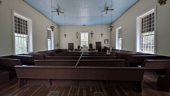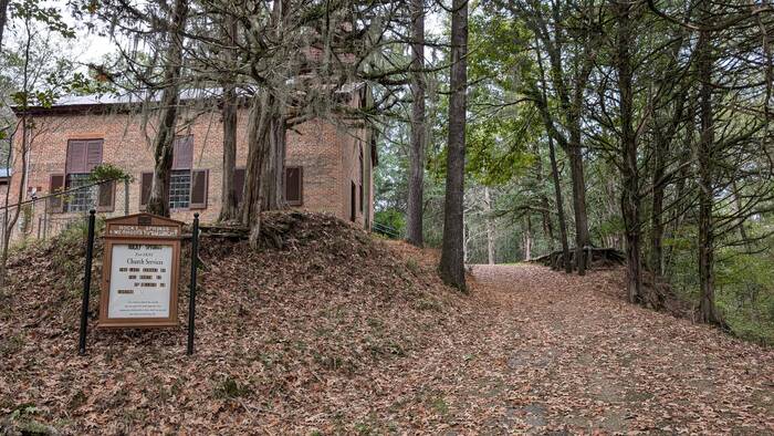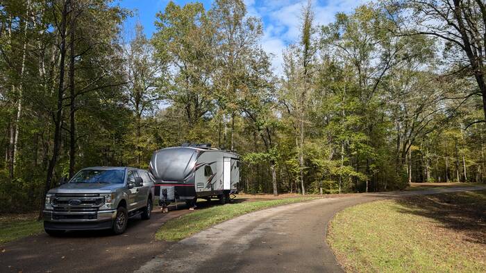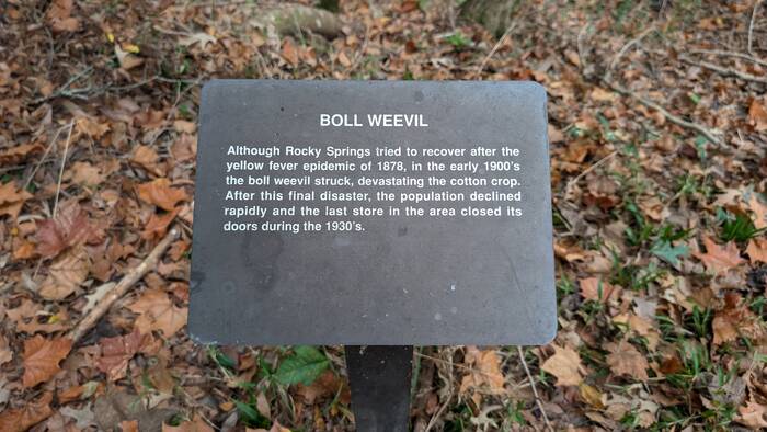 On Thursday morning we were back on the Natchez Trace again, headed toward Rocky Springs Park, another free first-come-first-serve campground. We got an early start to our three-hour journey in the hopes of finding a spot with a better exposure for solar, as we had drawn down our batteries considerably in the shady spot at Jeff Busby. (It turns out that cloudy days under shady trees in November just don't provide enough solar to keep up with our electrical usage-- go figure 🙂. )