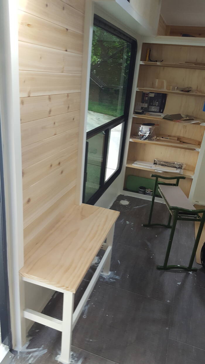 Once it was finished - then into the camper it went with some legs for the corners just to make it a bit more sturdy (you could probably park a car on it at this point). We will have to take it off again to put the new floor in though . . .