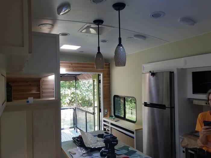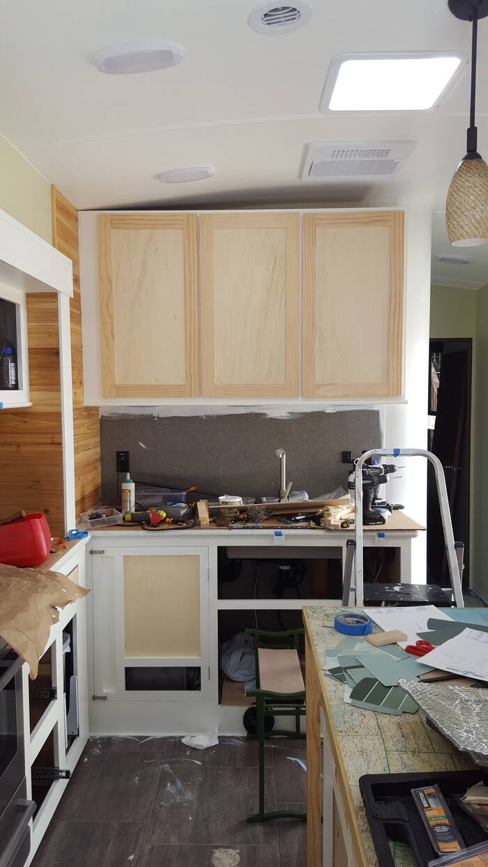 Also completed was lots and lots of painting - pretty much everything gets painted from the original slide trim and cabinets to the ceiling and all new cabinets . . .