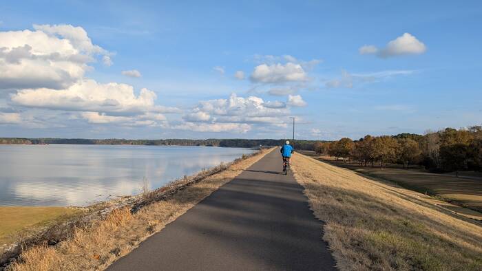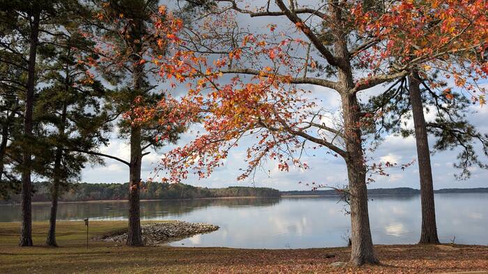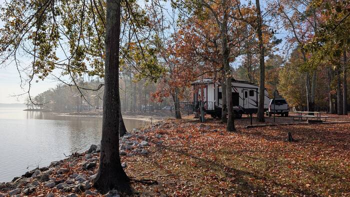 We had a gorgeous site overlooking Okatibbee Lake, and we took the opportunity to mostly just absorb it all while the last remnants of autumn lingered around us. We took a walk. We rode our bikes. We sat on the deck watching the birds and the fish jumping out of the water. Not exactly the stuff that makes for gripping content.