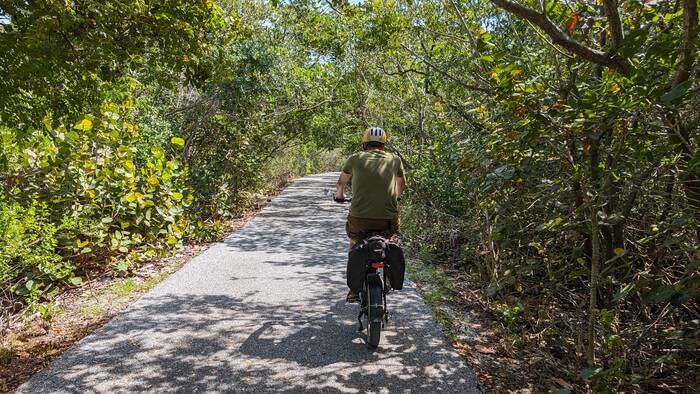 We were making better time to the island on our bikes than the cars were on the road