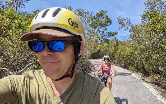 The other interesting thing is we took our now annual trip down to Anna Maria Island. We chose a beautiful warm day, but what we didn't realize was that it was Spring Break for Florida schools. So, it was a bit busy. Traffic to the island was horrendous, so we ended up parking at a nearby nature preserve and rode our bikes to the island. The ride through the nature preserve was quite nice, so it was a win for us.