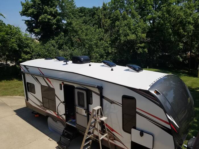 I put in two more fans, only the fan at the back of the camper remains . . . that will be replaced by a skylight soon. That will finally get rid of the goofy blue covered fans that came with the camper (who thought blue colored covers was a good idea????).
