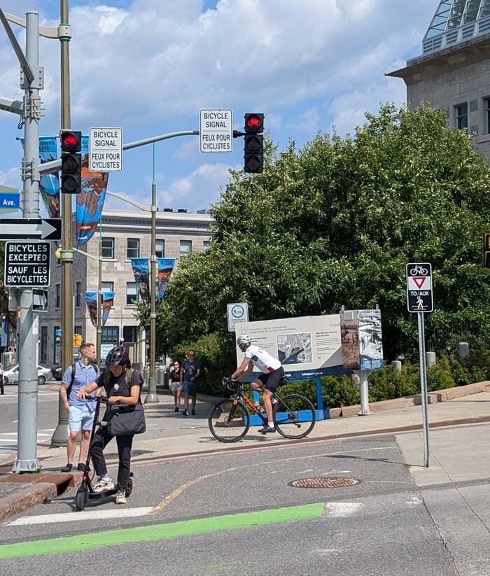 The main advantage of this overpriced campground with flaky 15-amp electric service requiring regular supplementation from our battery bank was that it was very close to a bike trail that connected with the Ottawa bike trail system. And we have to say that the Ottawa bike trail system is probably the best we have ever ridden on. There were bike trails or lanes pretty much everywhere we wanted to go. Even though many of them had construction closures, there was always an easy detour to take with bike and pedestrian specific detours. (And we thought Chicago construction was bad--without a doubt, Chicago can't compete with Montreal and Ottawa!)