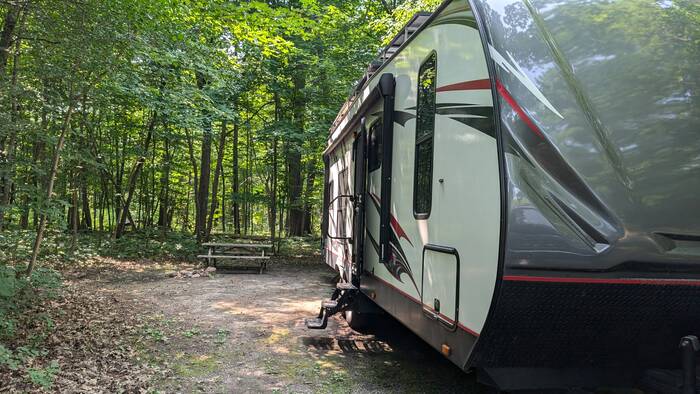 Our campground was conveniently located near the nation's capital of Ottawa. Our site was in a patch of damp, dense woods and came with lots of thirsty mosquitos. We didn't bother to get the deck chairs out for this stay.