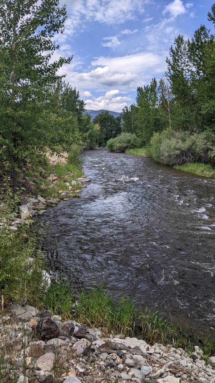 Our campsite was right outside the town of Salmon where we found a free gravel parking lot next to the river where dispersed camping was allowed.