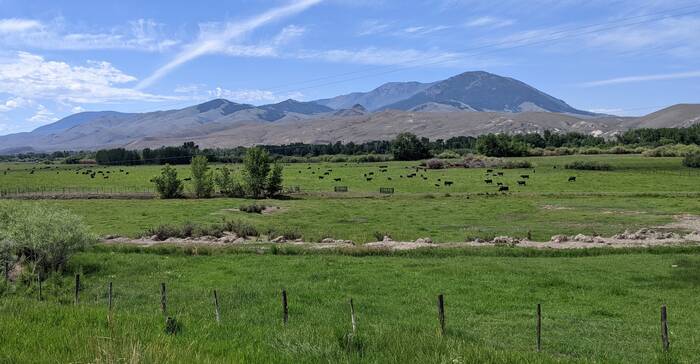 For a basic gravel parking lot, it turned out to be a pretty decent spot with a nice view of the mountains, neighboring cows, and the confluence of the Lemhi and Salmon rivers. And, did we mention it was free?