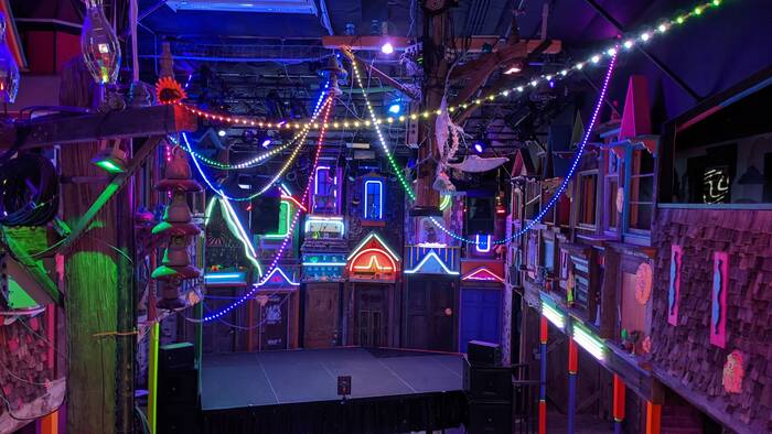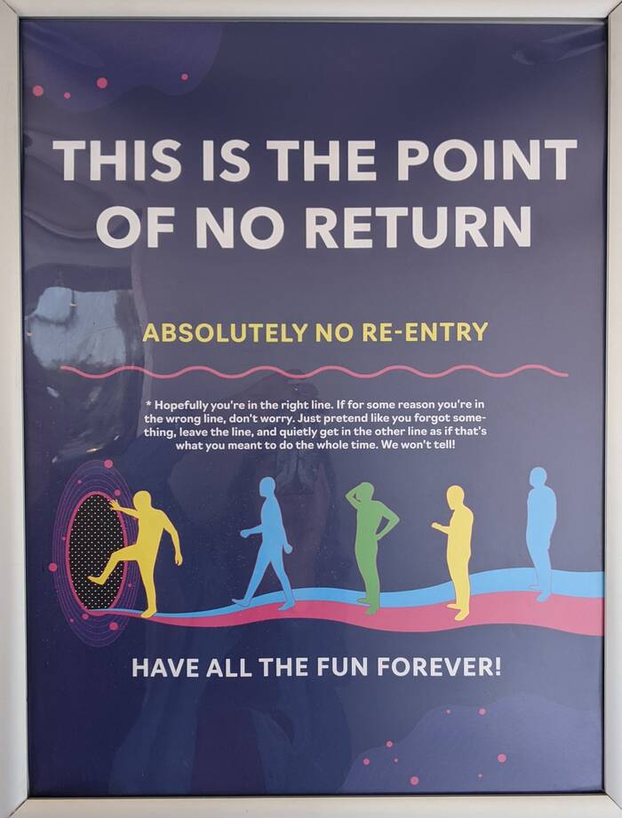 For our first day in Santa Fe, we had purchased tickets for Meow Wolf. You might be wondering what that is. Well, it is a bit hard to describe. Their website puts it this way: "Meow Wolf's House of Eternal Return is a mind-bending, explorable art experience for people of all ages in Santa Fe, NM". That turned out to be a pretty accurate description, and we ended up enjoying the experience. The facility was quite large, having over 70 "rooms" on two levels. We spent over two hours finding all the secret rooms, interacting with the art, solving the occasional puzzle, and just marveling at the creative use of space. It's hard to really get the feel for the place with pictures, but we'll supply some anyway...