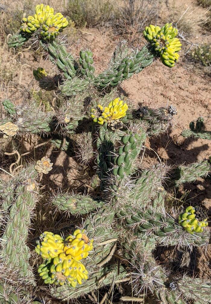 The fruit of the tree cholla cactus resemble tiny bunches of bananas. Too bad we missed the purple flowers!