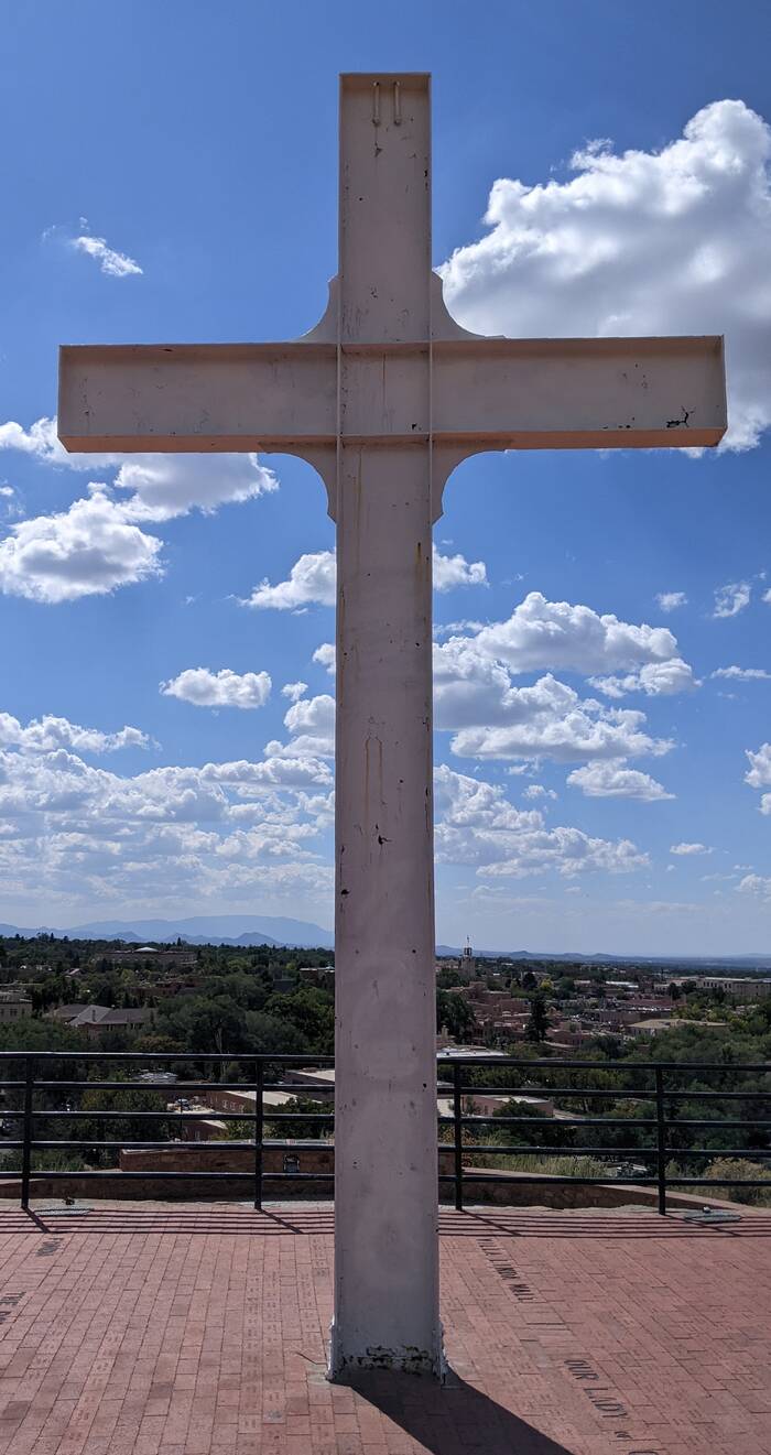 The Cross of the Martyrs monument sits on top of a tall hill overlooking Santa Fe.