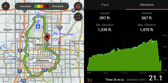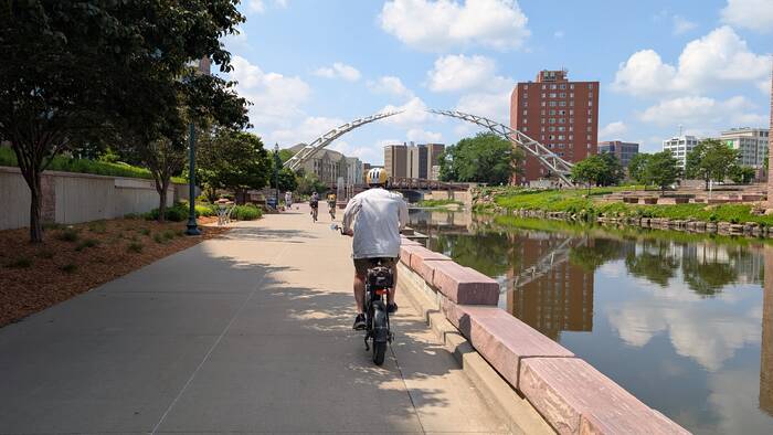 Saturday was a gorgeous sunny day, so we headed to Sioux Falls to check out the Falls and ride the very nice Sioux Falls Recreation Trail that circumscribed the city.