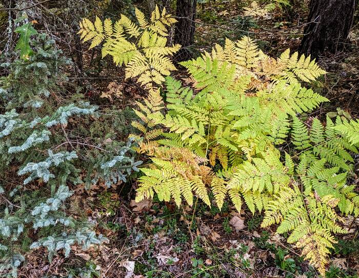 We had camped in this area of Wisconsin for quite a few summers when the kids were growing up, and it was nice to visit again after so many years. One of the first places Julie wanted to revisit was the Fallison Lake Nature Trail (an easy 2.5 mile hike). We had gone there a few times in previous summer months, so it was nice to experience it with the little splashes of early fall color.